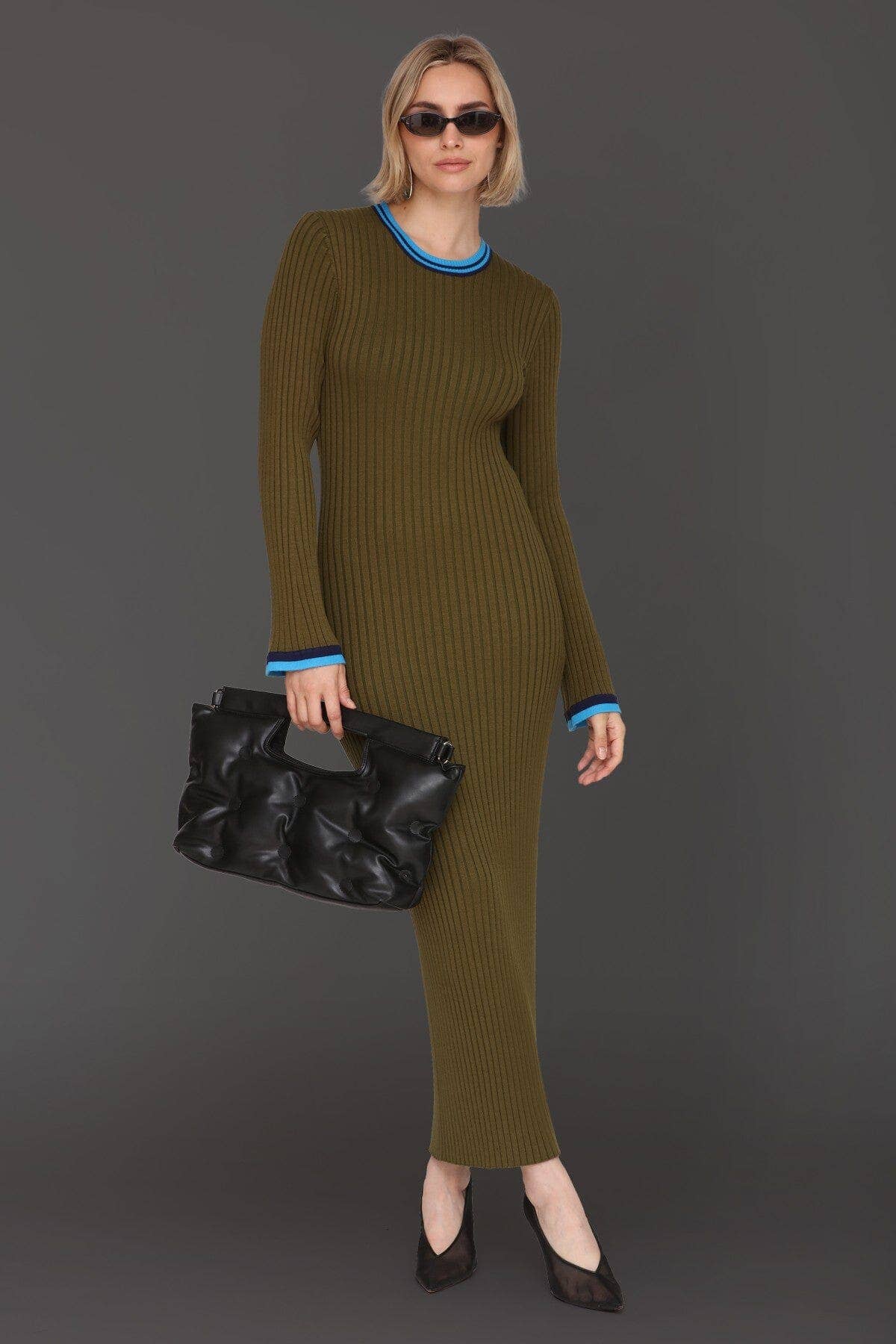 Contrast Trim Maxi Sweater Dress: Ivy Fern