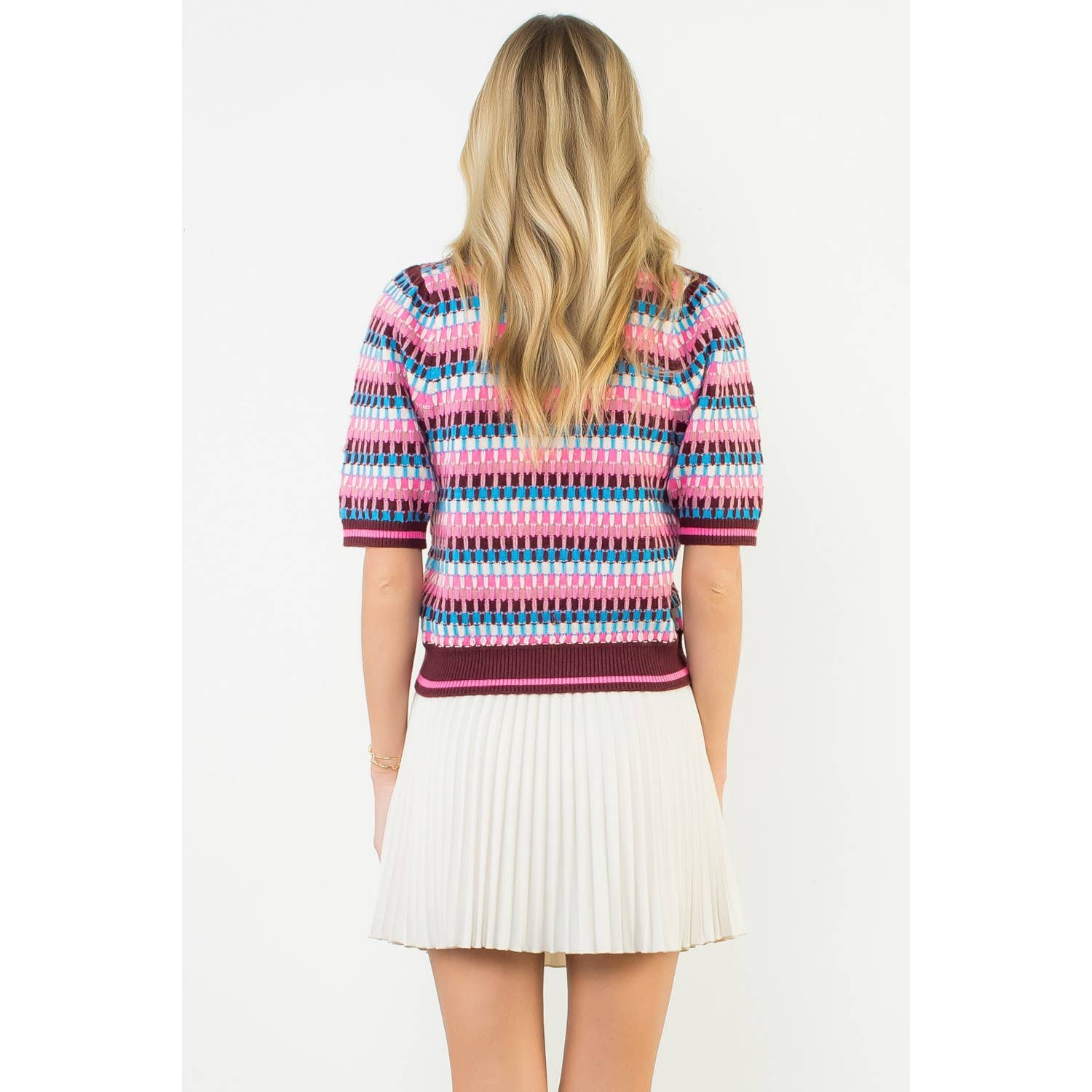 Short Sleeve Multi Color Knit Top